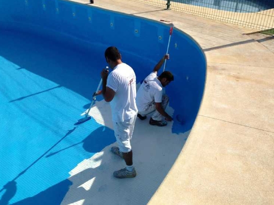 Pintado de piscina hormigón y fibra, Reparación filtraciones grietas fisuras, Reparación skimmer, Revestimiento de piscina, Parches de fibra, Vitrificado bordes de piscina.